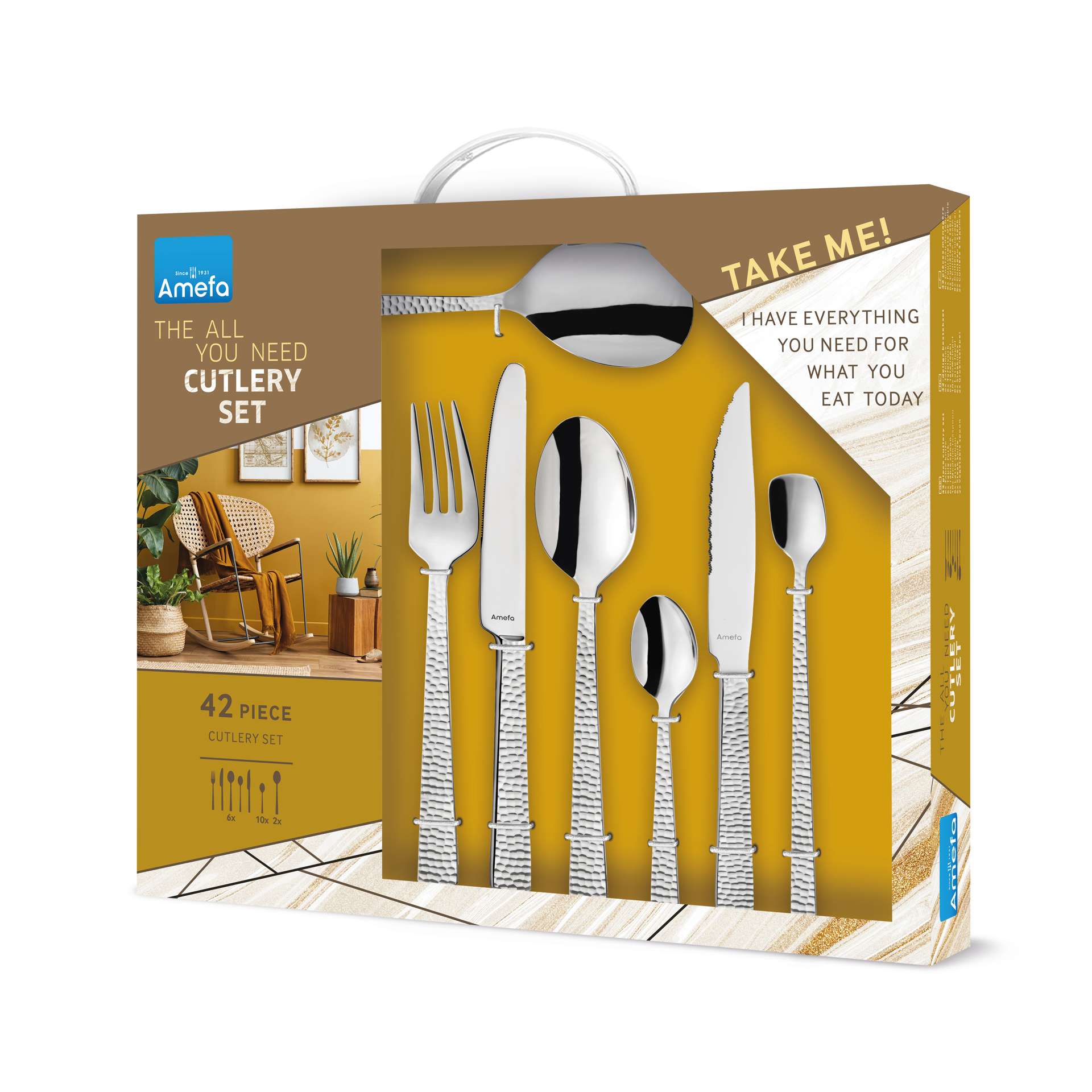 Felicity bestek van Amefa brengt het gevoel van eigentijds handwerk op tafel door de grove, gehamerde decoratie op het heft. De gekleurde hoogglans afwerking geeft een stijlvolle en moderne twist aan elke tafelsetting. De gehamerde decoratie op het handvat zorgt voor een mooie reflectie op het bestek waarbij de glans perfect tot zijn recht komt.