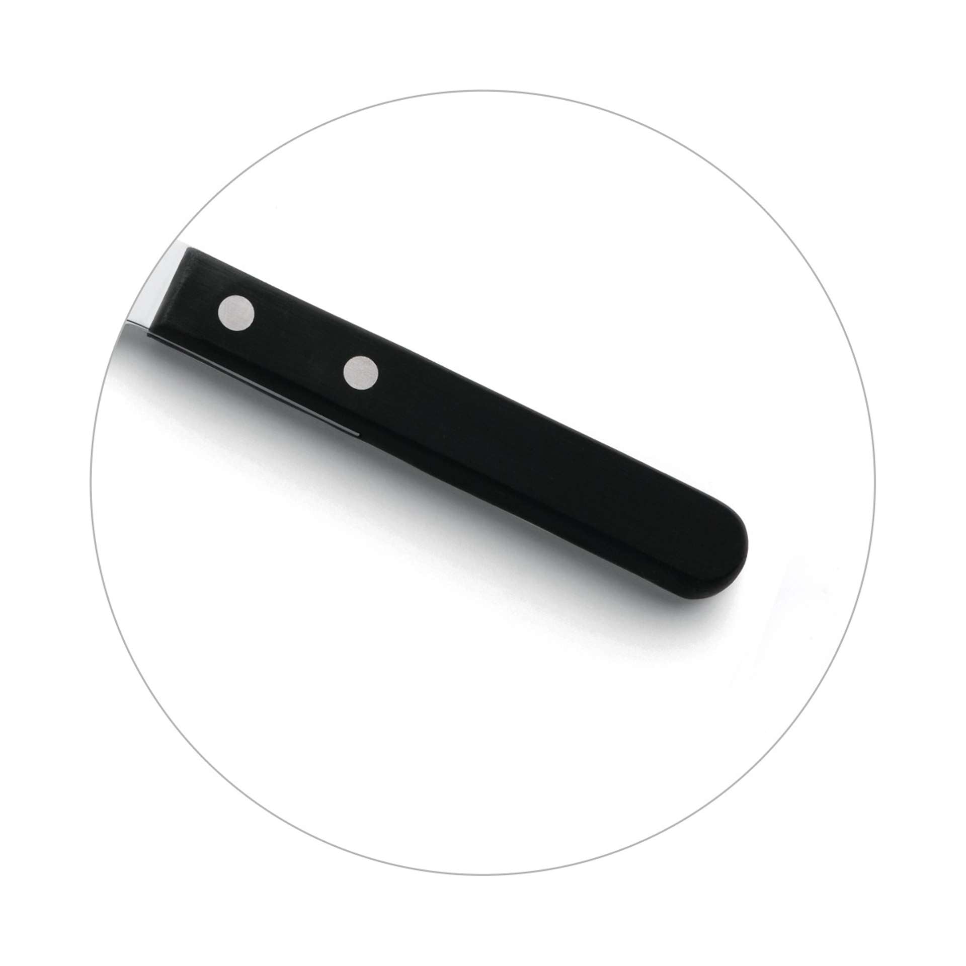- Riveted handle and fine serration